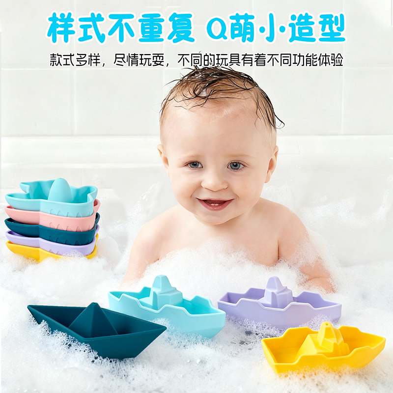 亞馬遜跨境兒童沐浴可愛(ài)小船玩具創(chuàng)意戲水玩具寶寶硅膠洗澡玩具