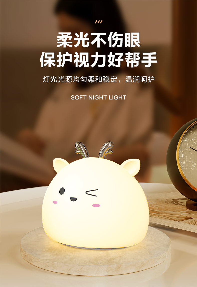 小鹿硅膠小夜燈 拍拍感應(yīng)燈喂奶起夜燈