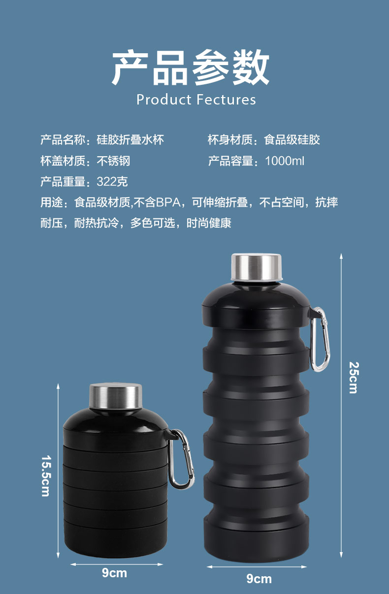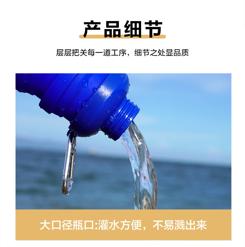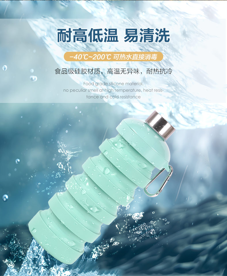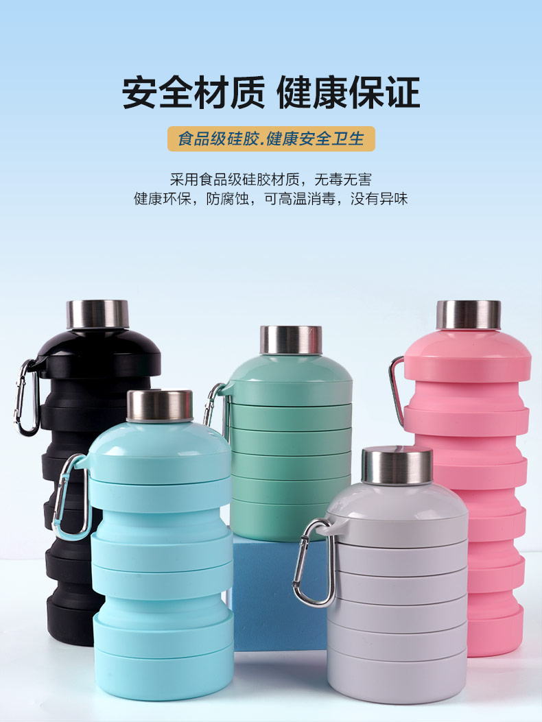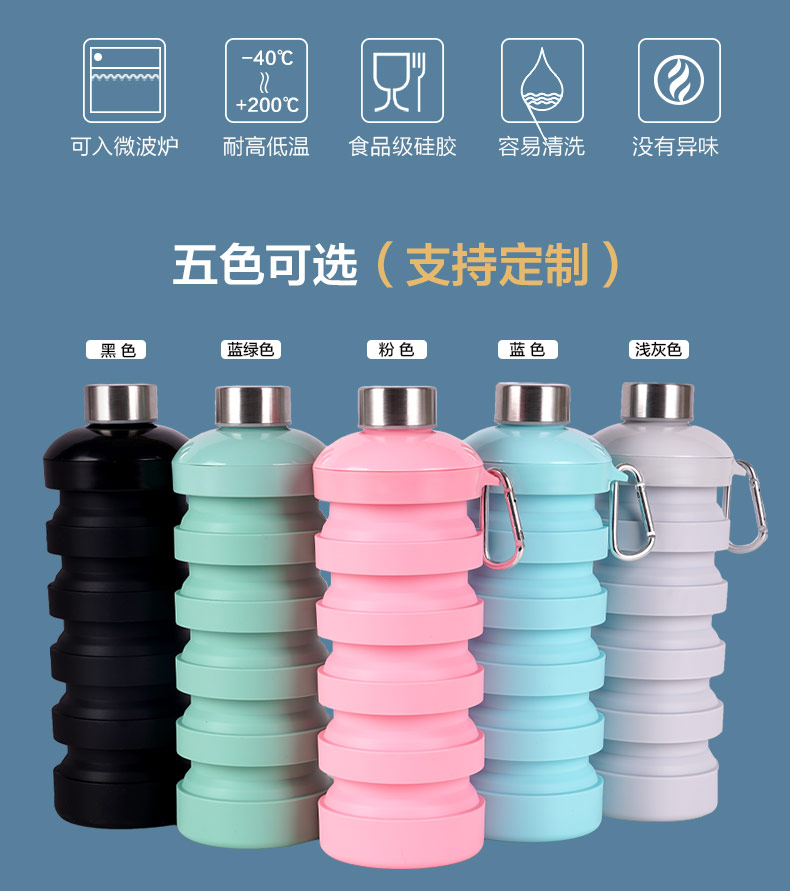 用途:食品級(jí)材質(zhì),不含BPA,可伸縮折疊,不占空間,抗摔耐壓,耐熱抗冷,多色可選,時(shí)尚健康