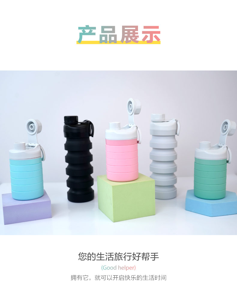 用途:食品級材質(zhì),不含BPA,可伸縮折疊,不占空間,抗摔 耐壓,耐熱抗冷,多色可選,時尚健康